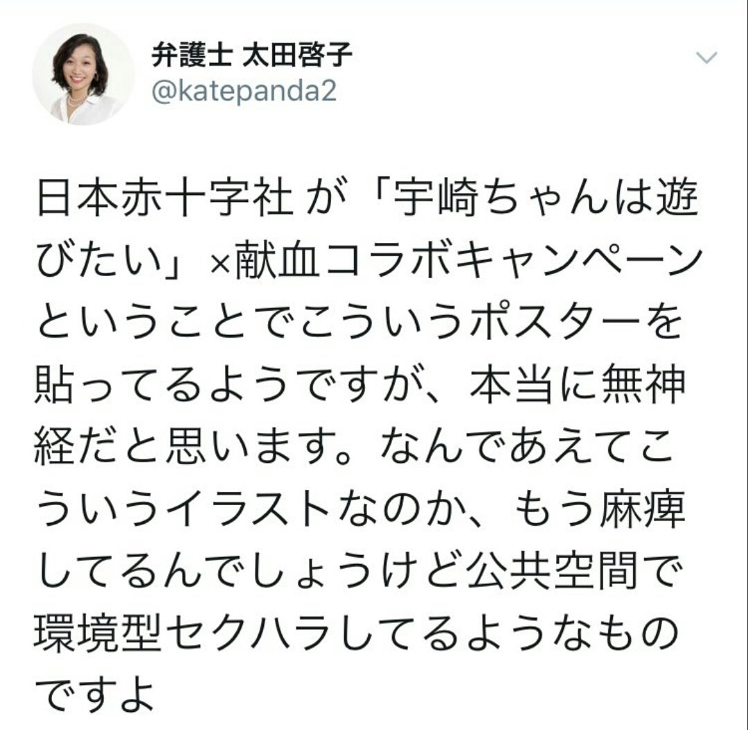 @livedoornews 献血コラボポスターに『環境型セクハラのようなもの』と文句をつけた太田啓子弁護士と、