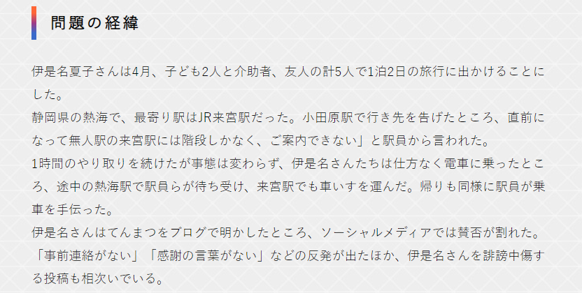 伊是名さんはたまたま小旅行をしようとしたらJRに「乗車拒否」されたのではなかったんですか?