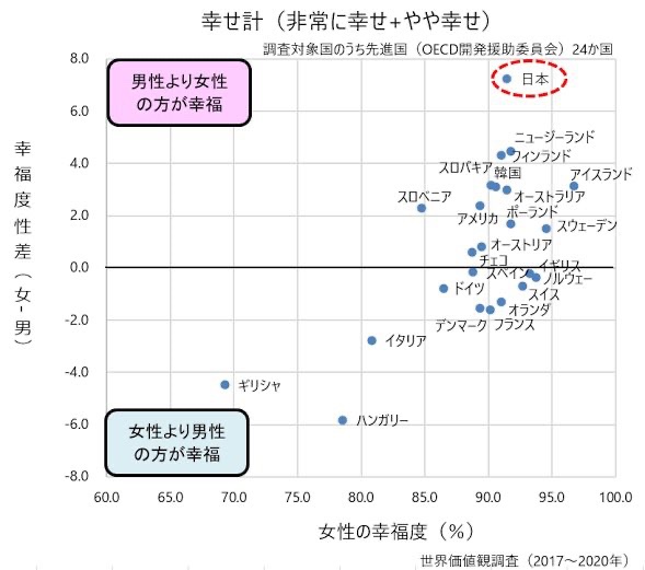 安心してください。日本人女性は男性よりも幸福で、ジェンダー不平等指数では162カ国中24位で米英よりも高いです。