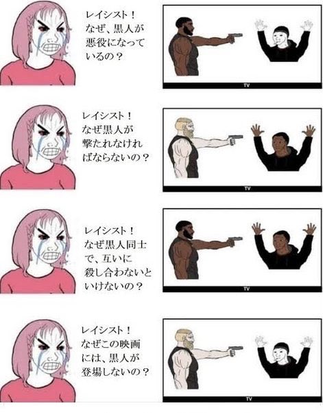 @tanuchan_pon 白人の映画に黒人が出てきて不満を言うやつみたいだ。。。