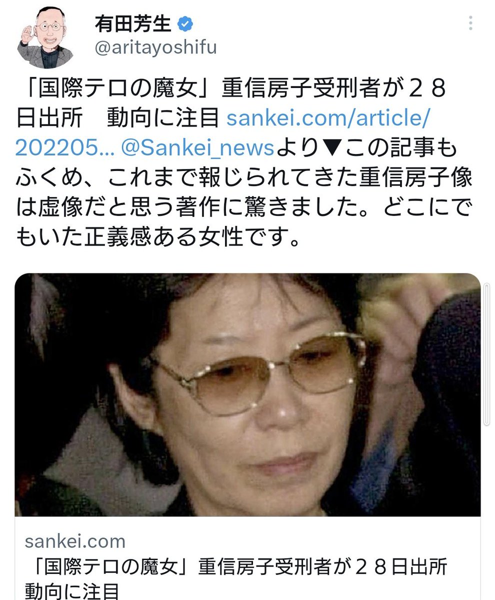 #日本赤軍の老姫重信房子を称賛する有田芳生 https://twitter.com/inari_oji/status/1647976269357907968 … pic.twitter.com/TkAP6L7GRh