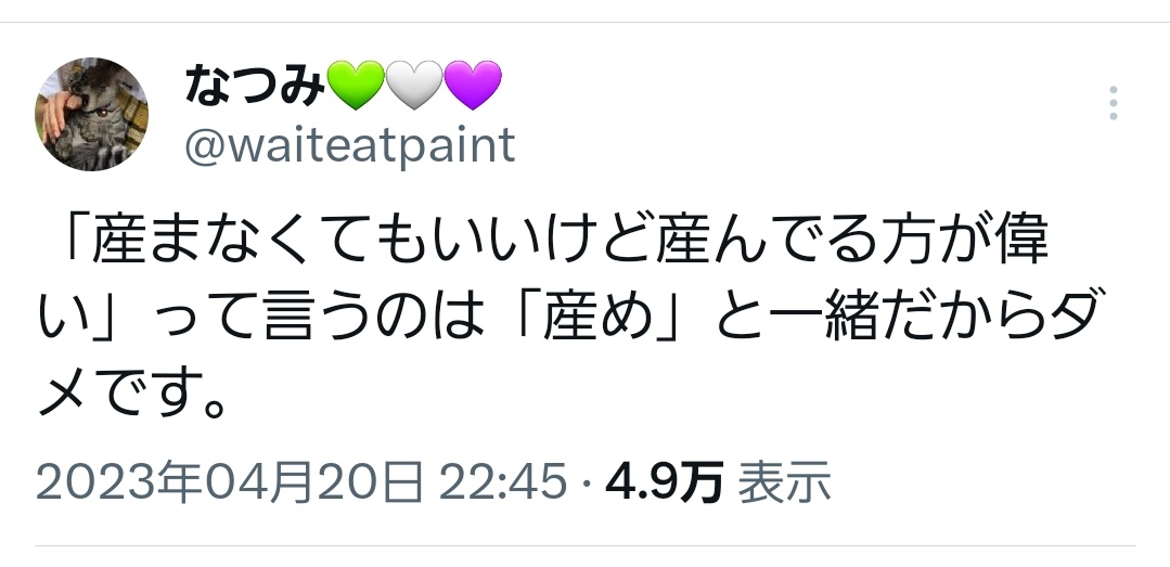 産まないと表明する女性は何歳でも叩かれる国日本。 https://twitter.com/waiteatpaint/status/1666467907377987584 …